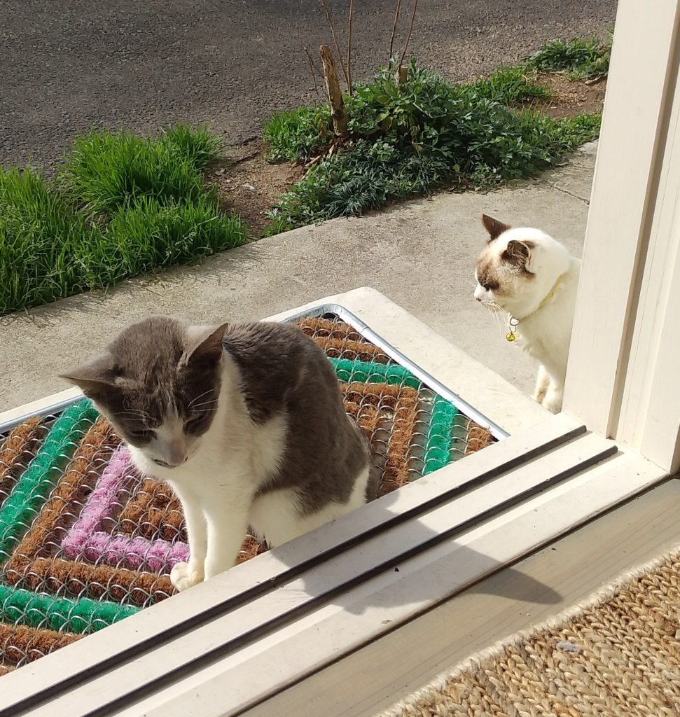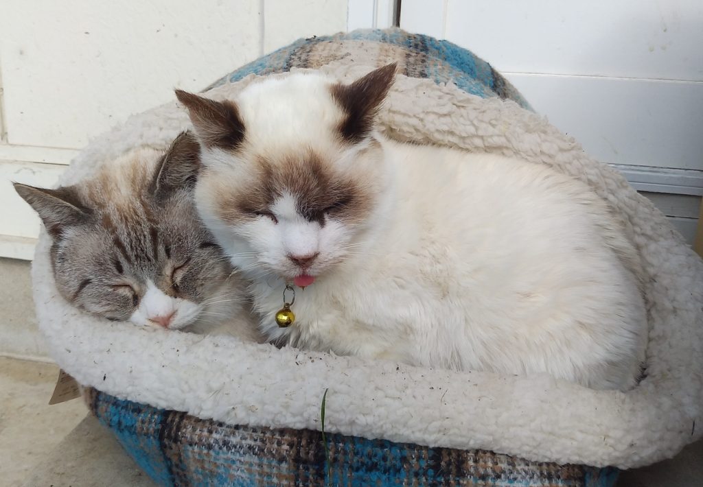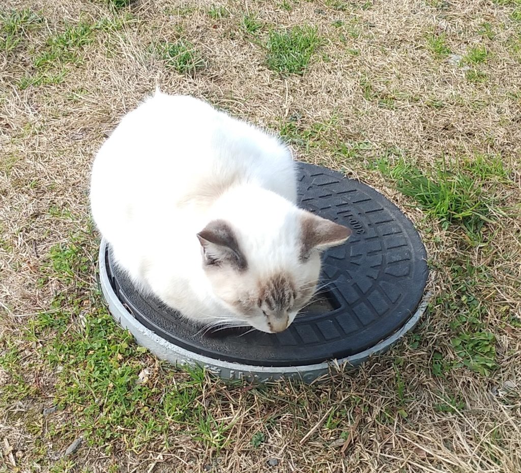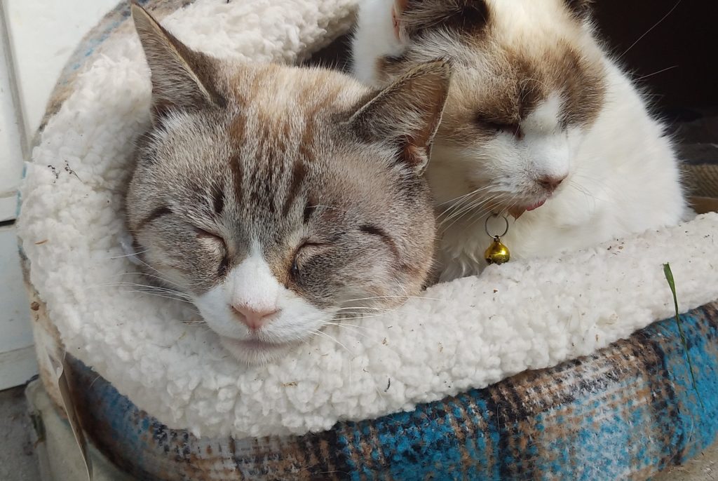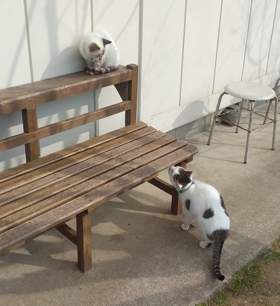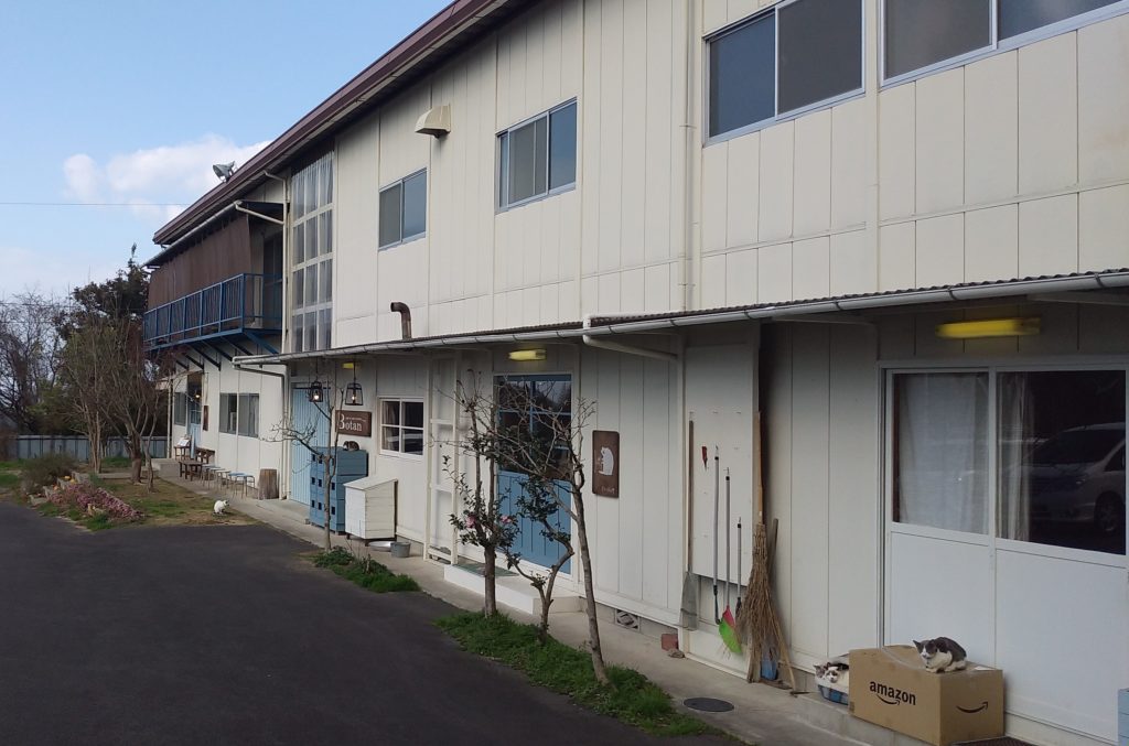 山の中の自然の中にお店があって、お店の前には猫マンションがあって。