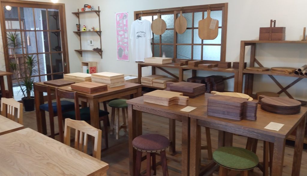 横長の大きな建物で、奥がカフェ、手前が工房になっています。