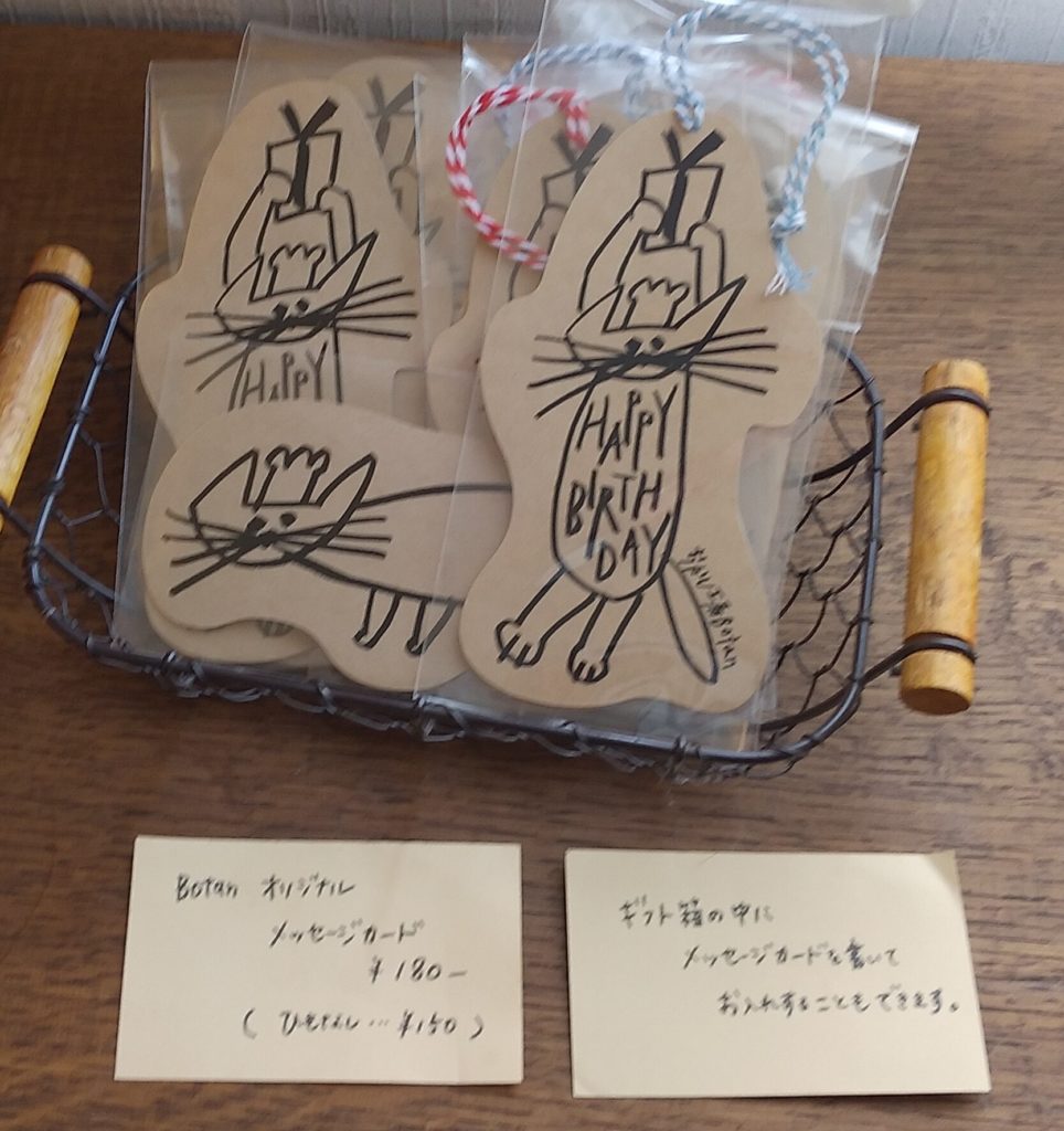 木のコースターにBotanの刻印。オリジナル食器もいいなぁ。
