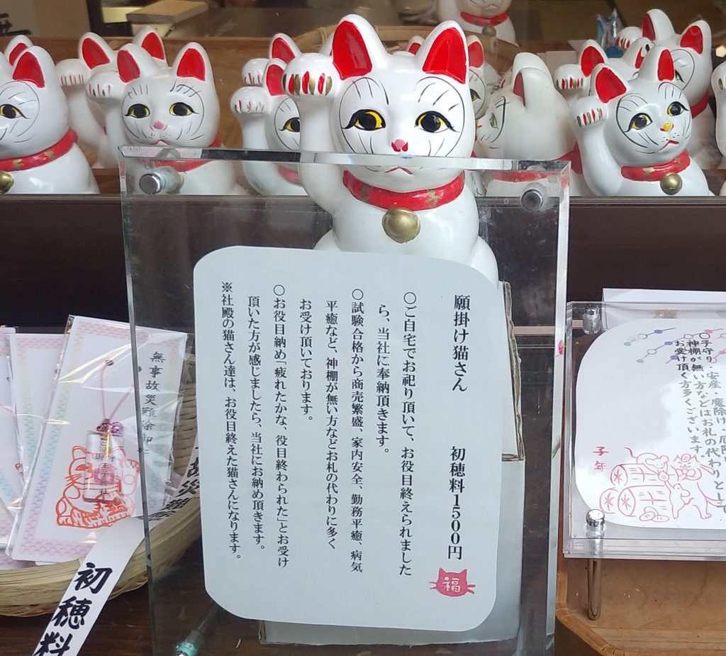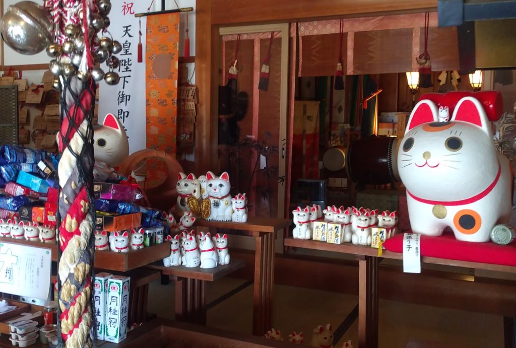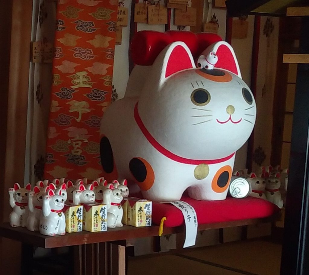 たくさんの招き猫や猫お守り、本当の猫もいて、猫好きには嬉しくて心が和む神社でした。猫好きの人にはパワースポットです。特に大きな張り子と木製の猫はかわいかったなぁ。