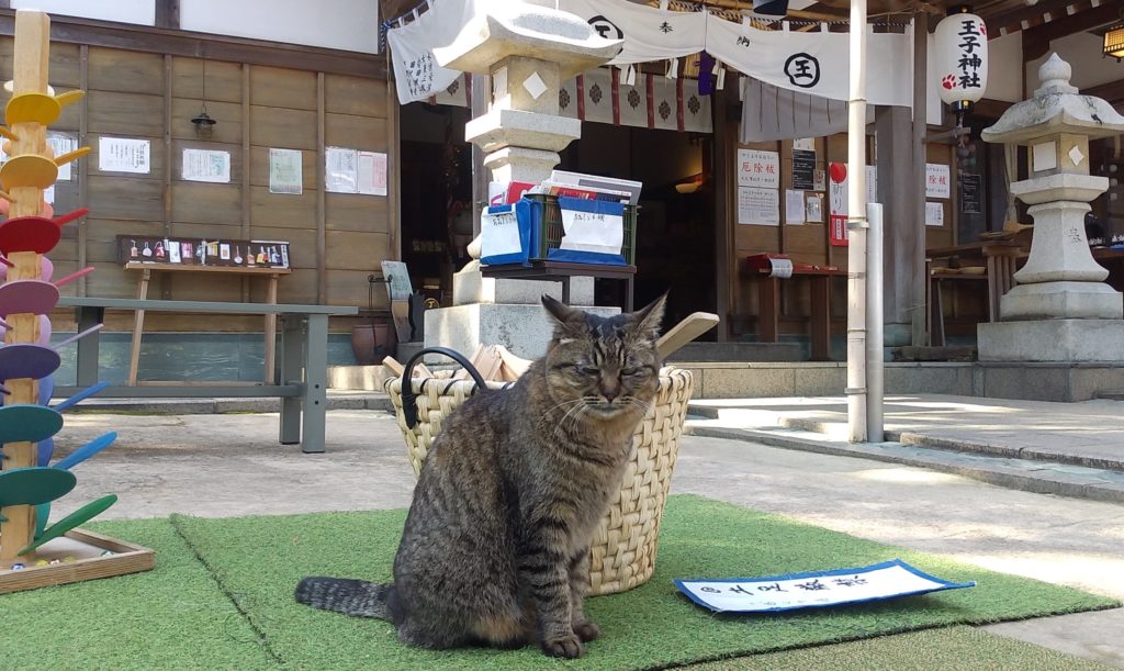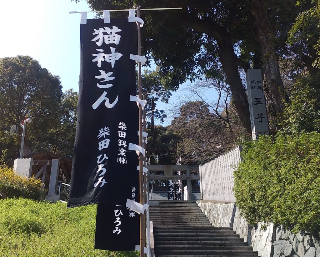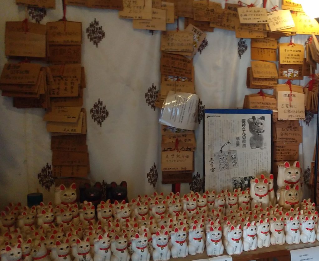 徳島県にある”猫神さん”と呼ばれる猫神社があると知り、一度、見てみたくて訪れました。正式な名称は『王子神社』なのだそうで、県立の美術館と図書館の敷地内の一画にありました。